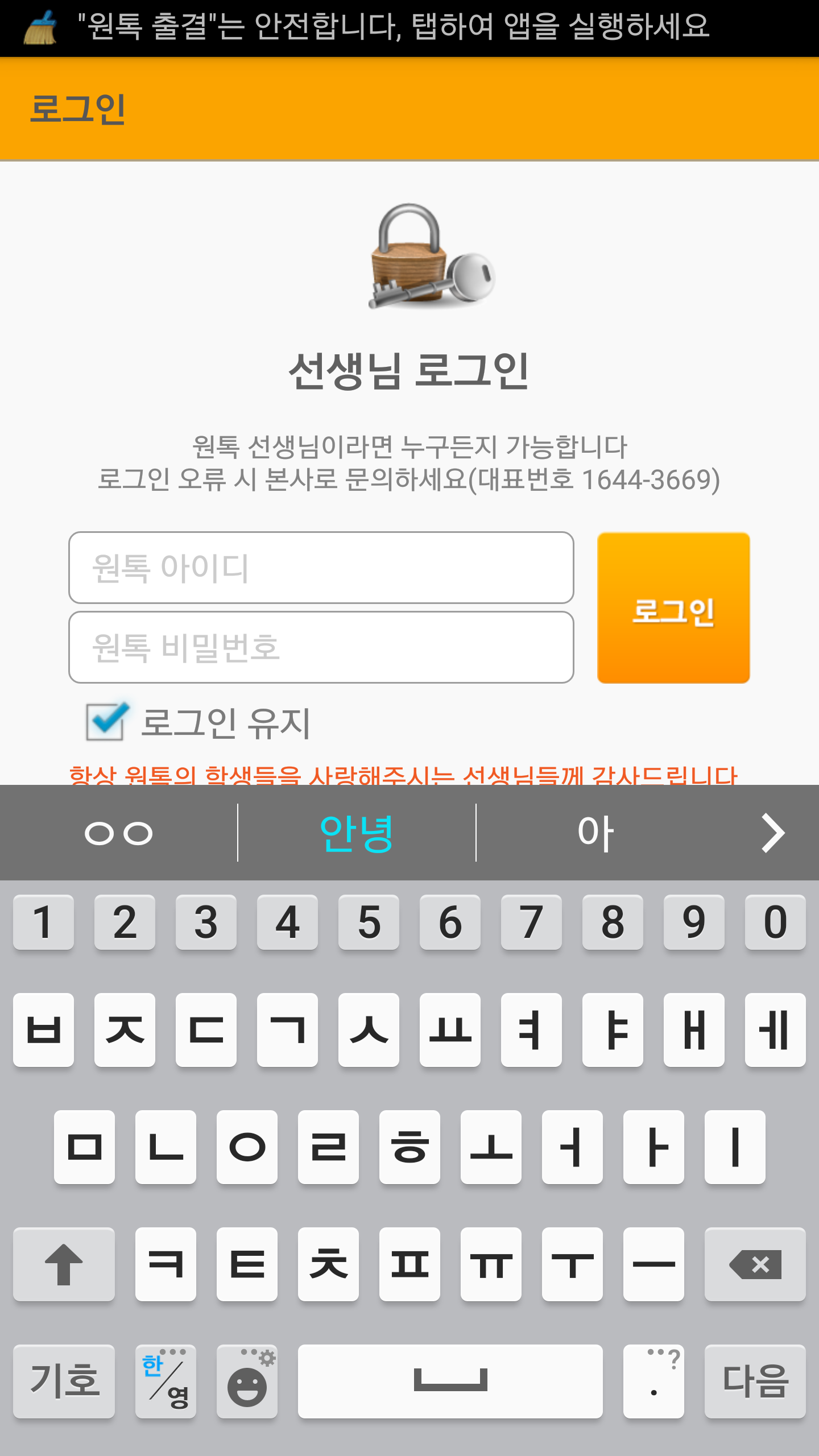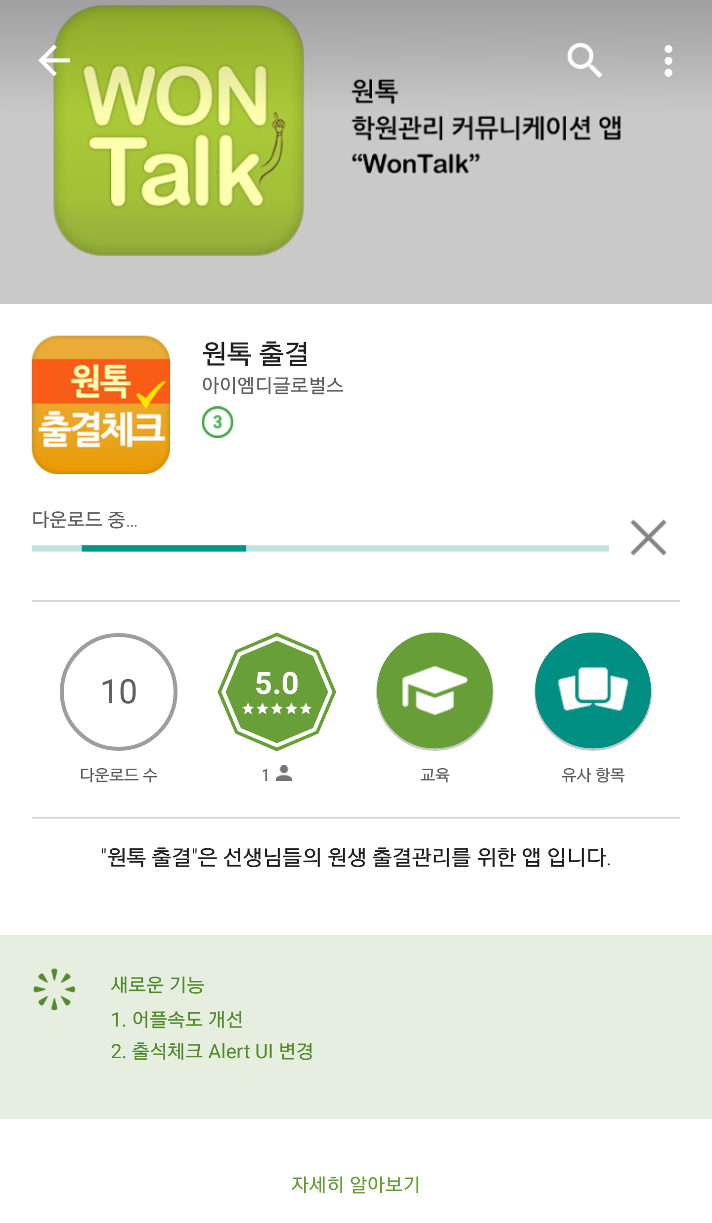 구글 Play 스토어에서 "원톡출결" 로 검색 합니다.