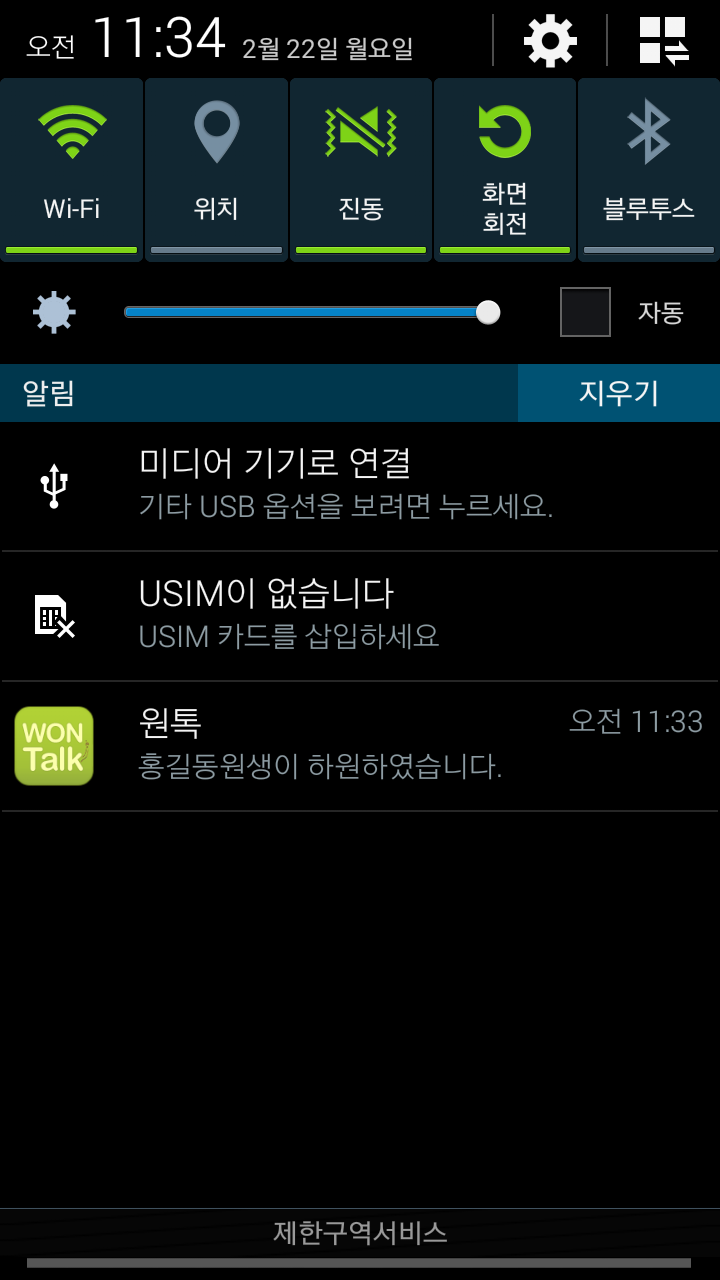 상단 알림바에 원톡알림이 뜨고 핸드폰 진동/벨소리로 알림이 들립니다.